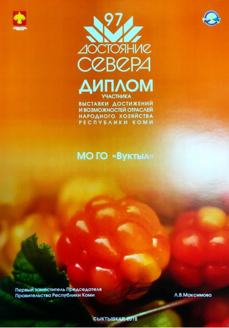 По окончанию выставки городскому округу «Вуктыл» был вручен диплом участника выставки достижений и возможностей отраслей народного хозяйства Республики Коми «Достояние Севера».