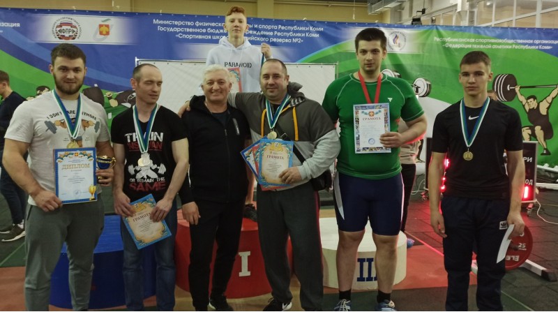 Среди юношей в весовой категории 66 кг 1 место занял Владислав Михайлюк, взявший вес 80 кг. Также 1 место и у Александра Пономарева в весовой категории 53 кг с результатом 72,5 кг. Владислав и Александр готовятся выполнить разряд КМС. Среди юниоров абсолютным чемпионом, установившим новый рекорд Республики Коми в весовой категории 93 кг стал Максим Алексеев с результатом 192,5 кг. В копилку мастера спорта упали две медали. Среди мужчин в весовой категории более 120 кг 1 место занял Дмитрий Иванов. Руслан Иванов, кандидат в мастера спорта, выступая в весовой категории 59 кг установил новый рекорд республики покорив вес в 115 кг, взял первое место в своей весовой категории и стал вторым в абсолютном зачёте среди мужчин. Еще один республиканский рекорд у Сергея Пустохина, мастера спорта, в весовой категории 120 кг. Он выжал вес превышавший собственный более чем в два раза – 252,5 кг, соответственно, первое место в своей категории и второе место в абсолютном зачете.