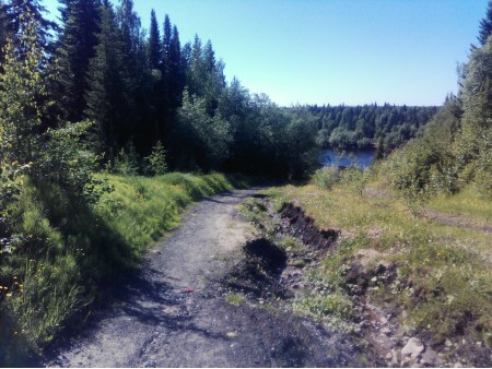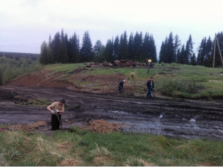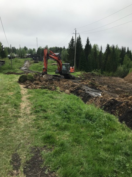 Сточные воды разрушили поверхность дороги и размыли большую ее часть. Чтобы иметь возможность подъезда пожарной техники для забора воды с реки в любое время года, требуется восстановить участок дороги. Для решения этой проблемы выполняются работы.