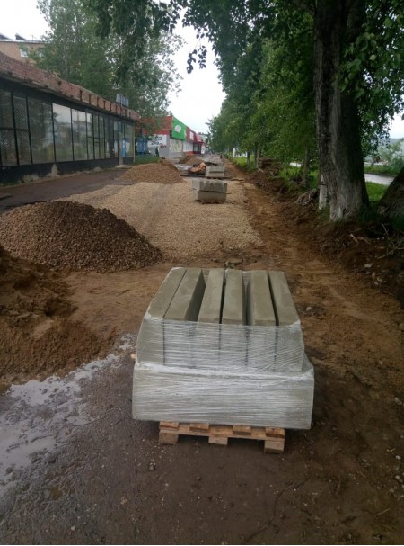 В настоящее время ведутся работы по выравниванию покрытия пешеходной улицы и ведутся подготовительные работы для укладки бордюрного камня.