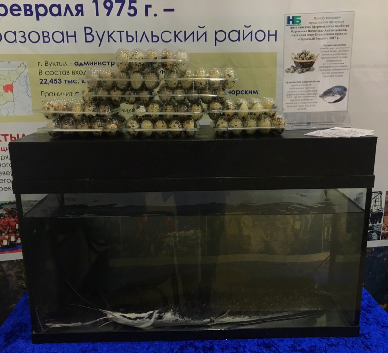 На выставке была представлена продукция крестьянского (фермерского) хозяйства Муравьева В.А. (перепелиные яйца, африканский клариевый сом) и хлебобулочные изделия мини-пекарни «Хлебный дворик» ИП Фарзуллаева А.Г.